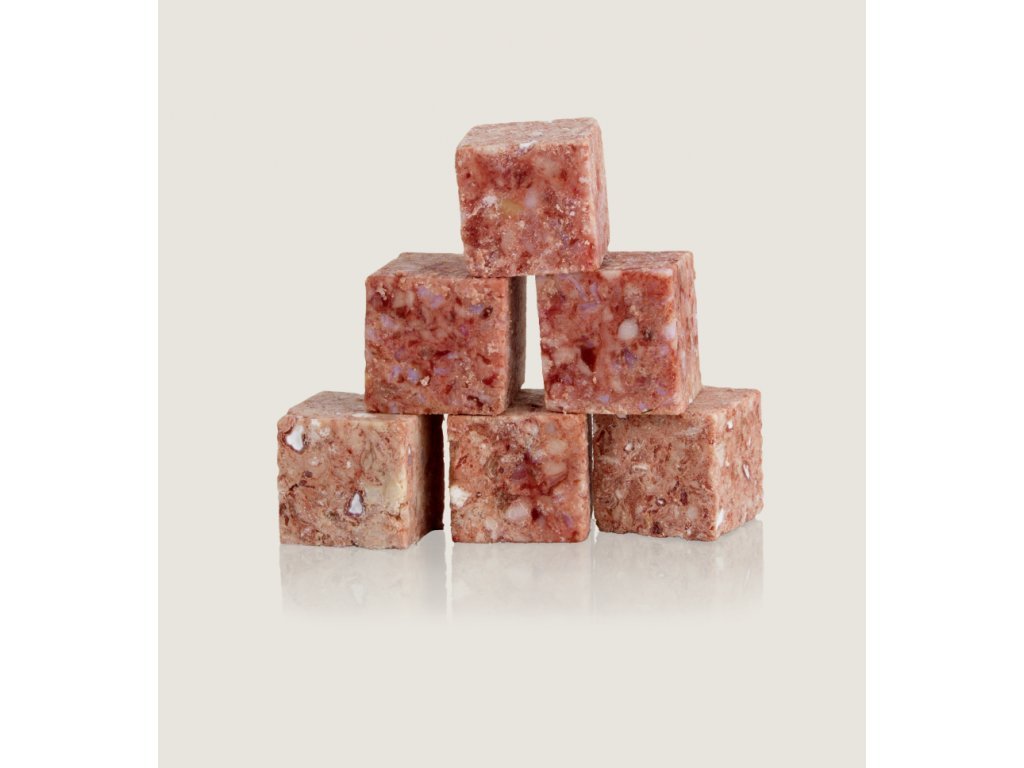 Kostní kostka z jemně nasekaných prsních a žebrových kostí z jehněčího masa je vhodná zejména pro velmi malé psy, juniory a seniory. Protože tito často nedokážou rozkousat tvrdou kost a úplně ji sníst. Díky své jemně nasekané struktuře jsou naše kostní kostky snadno stravitelné a poskytují životně důležité živiny, jako je vápník a fosfor pro zdravé kosti.