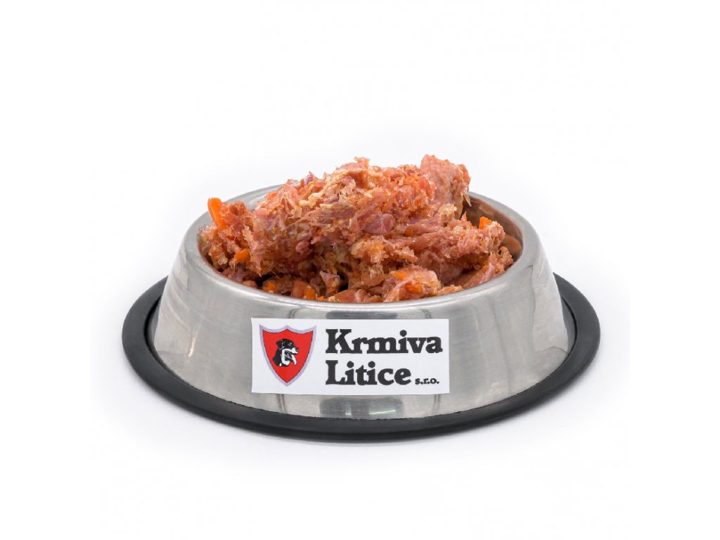 Kachna celá mletá s mrkví obsahuje přílohu ve formě mrkve v optimálním poměru, proto žádná další příloha není potřeba. Směs obsahuje také správný poměr kostí, proto je není potřeba více přidávat.