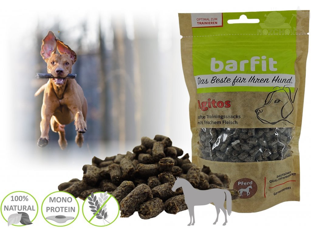 S tréninkovým pamlskem AGITOS odměníte svého psa cíleně a zdravě. S malými kousky nepřekrmujete během tréninku a přesto uděláte svému psovi radost. Nový barfit AGITOS konina v praktickém 350g sáčku. Malý, měkký, bez obilovin, bez brambor, pouze jedním zdrojem živočišných bílkovin a vyrobený převážně z čerstvých potravinářských surovin.